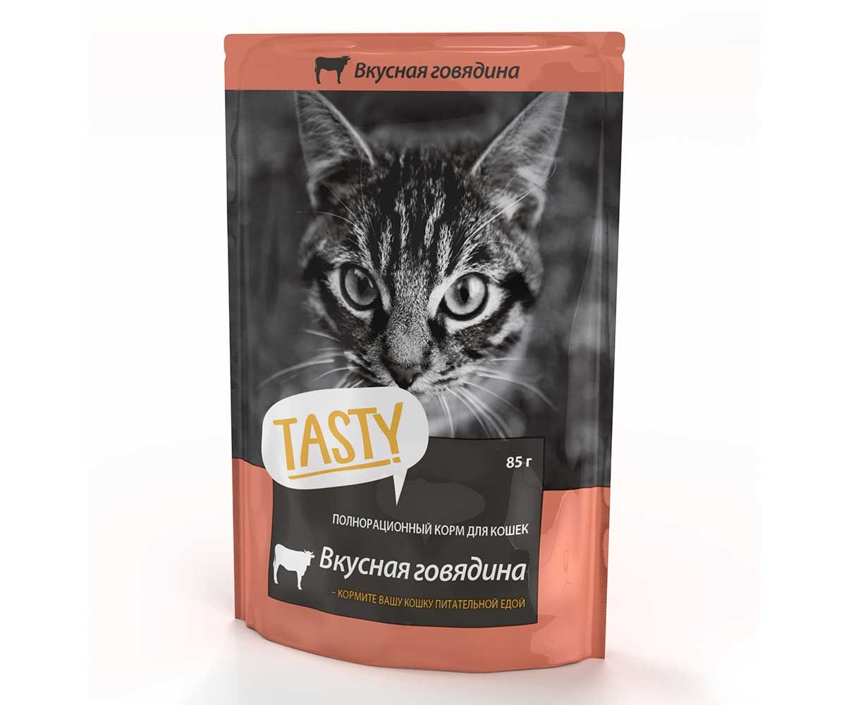 "TASTY" корм пауч для кошек Желе Говядина 85г