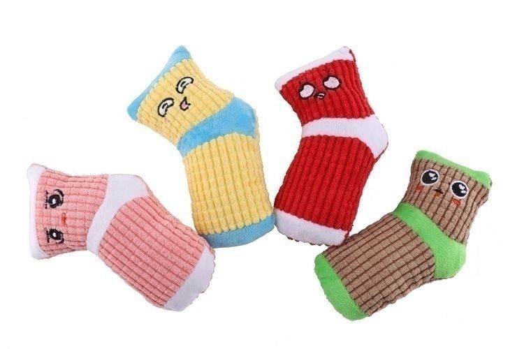 "WOGY" игрушка-пищалка для собак Носок 15х6см микс