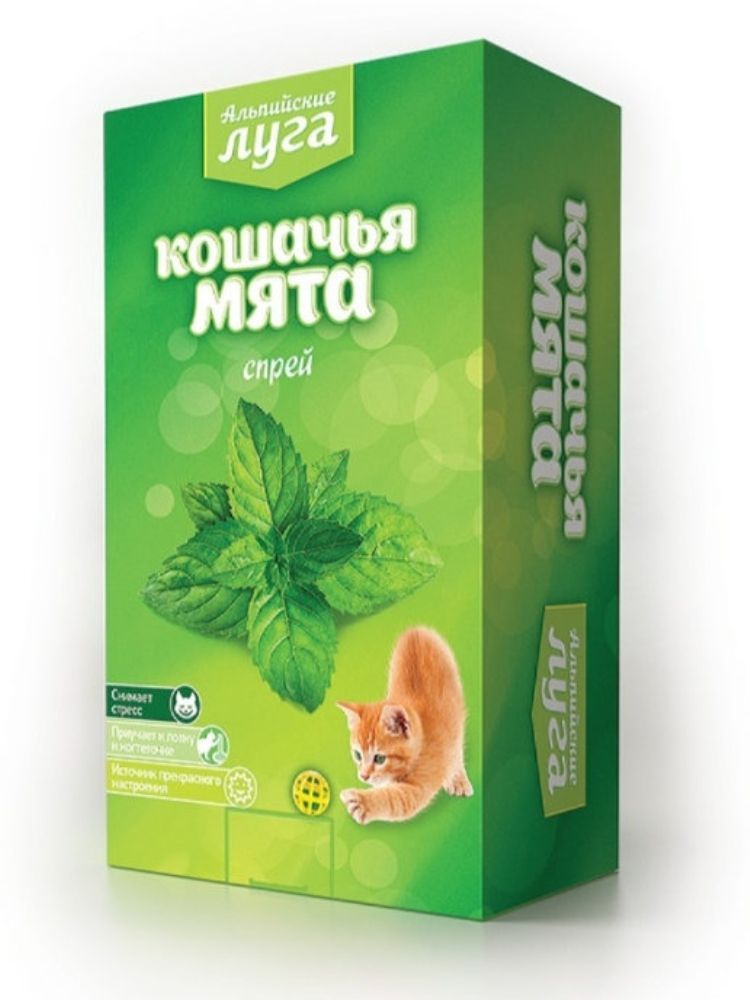 Альпийские Луга Кошачья мята спрей предназначен для обработки предметов обихода, когтеточек, игрушекс целью привлечения кошек к ним, а также для снятия стресса. СПОСОБ ПРИМЕНЕНИЯ: Встряхните флакон и распылите с расстояния 20-30 см на игрушку, подстилку или поверхность, к которой желаете вызвать интерес животного. Повторяйте обработку по мере необходимости, желательно еженедельно. Для проверки устойчивости окраски обрабатываемой поверхности к воздействию, перед применением встряхните флакон и аккуратно распылите средство на незаметном участке.