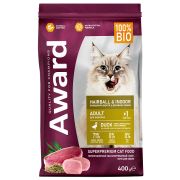"AWARD" Hairball & Indoor сухой корм для взрослых кошек для выведения шерсти с уткой и индейкой с добавлением зеленой чечевицы и Юкки Шидигера